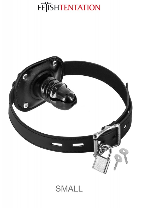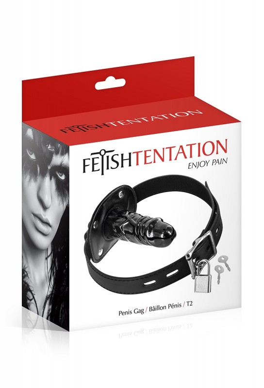 Apprenez à votre soumis(e) à se taire tout en se rendant utile avec ce Bâillon BDSM et son gode interne intégré de la marque Fetish Tentation. Le gode reproduit un sexe très réaliste noir avec gland et veines dessinés, disponible en 2 tailles.
