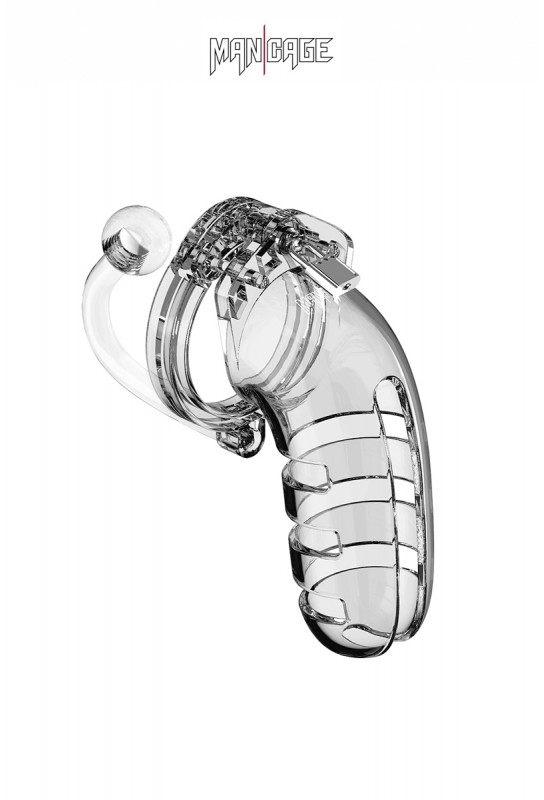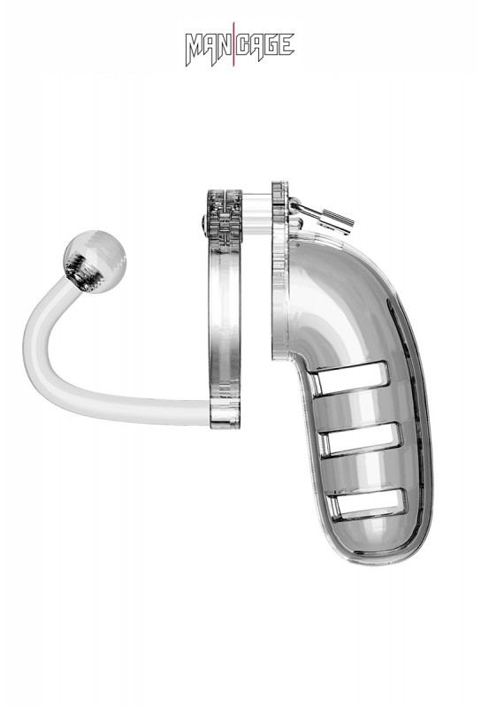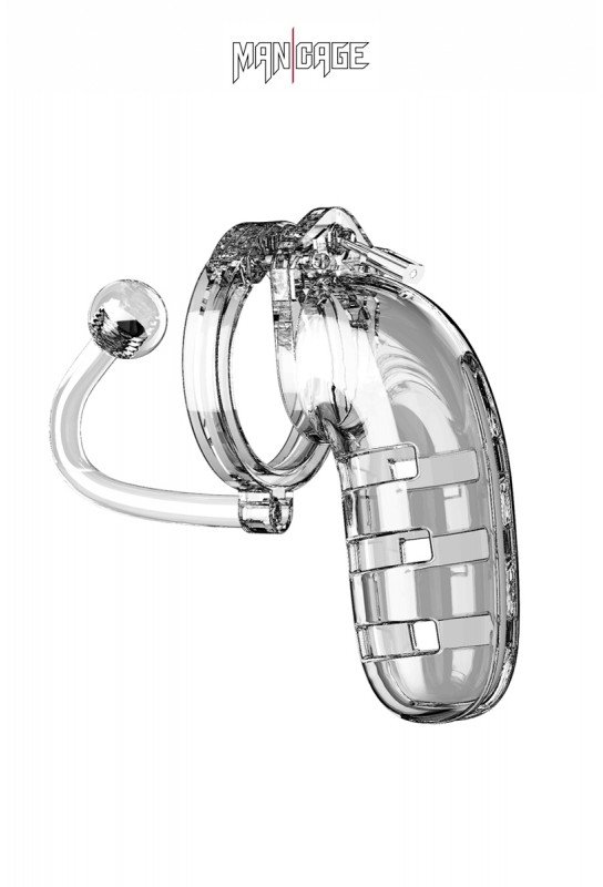 La marque ManCage, spécialiste des cages de chasteté masculine, présente son modèle ManCage n°12, une cage de chasteté transparente haute qualité de 14 cm de long avec un plug anal intégré amovible permettant d'ajouter de nouvelles sensations.
