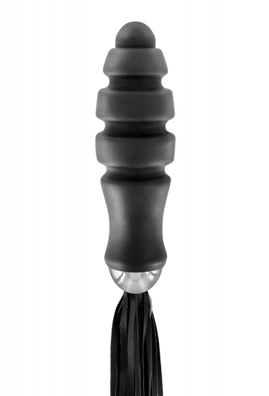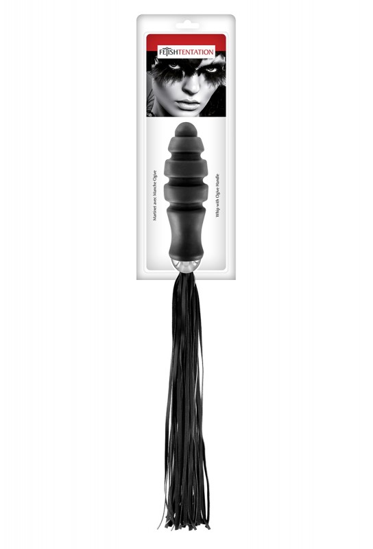D'inspiration BDSM, le martinet avec manche en forme d'ogive, développé par la marque Fetish Tentation, est un accessoire de plaisir 2 en 1 intégrant d'un côté un martinet, et de l'autre un godemiché dédié à la stimulation vaginale et anale.