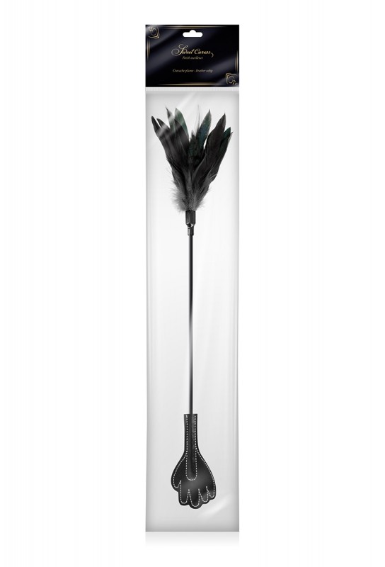 BDSM-pleasure se réjouit de vous proposer, la mini cravache main avec plumes noires de la marque Sweet Caress. La mini cravache est légère pour des jeux BDSM soft, avec une main en guise de claquette et des plumes à l'autre extrémité pour réveiller les sens. L'accessoire BDSM indispensable pour punir votre soumis(e) et en même temps lui offrir une récompense par des caresses.