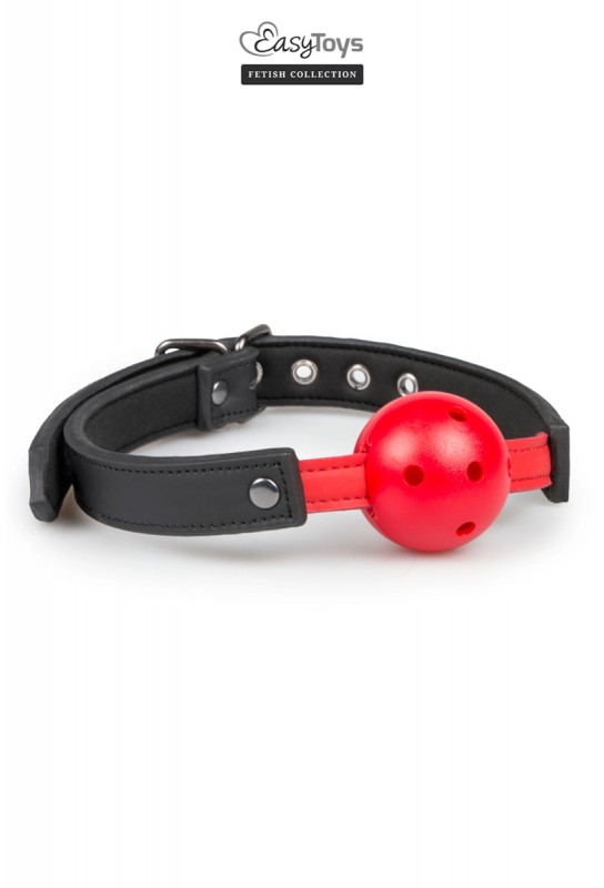 BDSM-pleasure est ravi de vous proposer le bâillon avec balle rouge, de la marque EasyToys Fetish Collection, idéal pour vos jeux d'esclave favoris ! Le bâillon Fetish SM est en cuir synthétique et en métal, avec balle en PVC rouge de 4,5 cm de diamètre percé pour faciliter la respiration