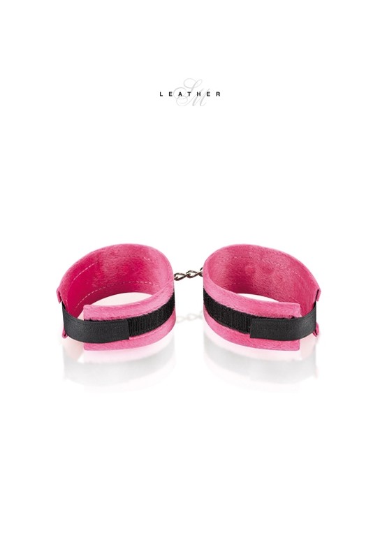 Paire de menottes réglables rose et noir pour poignets, très douces, avec fermeture velcro, fabriquées par Leather SM.