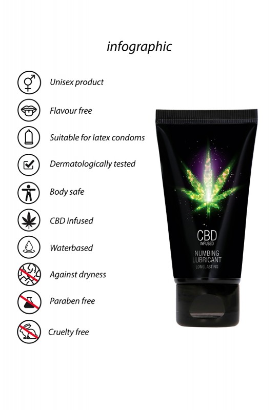 "CBD Numbing lubricant" est un lubrifiant à base d'eau qui contient du CBD (ou cannabidiol) comme principe actif.