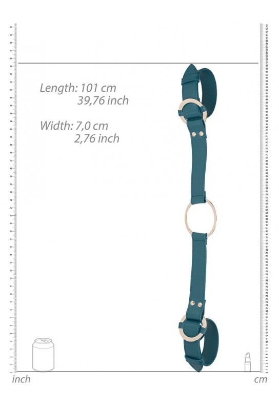 BDSM Pleasure est ravi de présenter ces menottes de poignets pensées pour lier les mains avec élégance et inviter à une position de soumission aussi sûre que raffinée. Leur design associe deux sangles ajustables en polyuréthane à un anneau central en métal doré, pour une prise en main nette et un rendu chic. Avec une largeur de 3 cm et une longueur de 100 cm, elles s’adaptent facilement et accompagnent vos scénarios BDSM avec style. Un accessoire incontournable pour intensifier la connexion, guider les gestes et faire monter la tension, tout en conservant une allure glamour.
