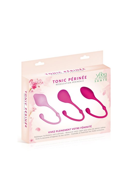 Tonic Périnée est un coffret dédié au plaisir féminin et à la rééducation périnéale. Il contient 3 boules de Geisha de poids différent afin de vous permettre une rééducation facile et progressive du périnée. Le port de ces boules de Geisha (ou "Kegel Balls") vous permet de remuscler votre vagin pour plus de plaisir intime, de prévenir la descente d'organes, de controler et de maitriser les fuites urinaires.