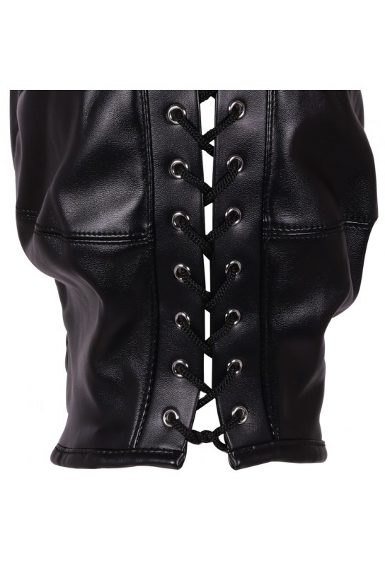 Les lacets ajustables à l'arrière garantissent un maintien confortable et personnalisé, tandis que la combinaison de polyester et de simili assure une sensation agréable sur la peau. Que ce soit pour une soirée spéciale ou pour pimenter votre quotidien, cette cagoule est l'accessoire idéal pour explorer vos fantasmes les plus profonds.