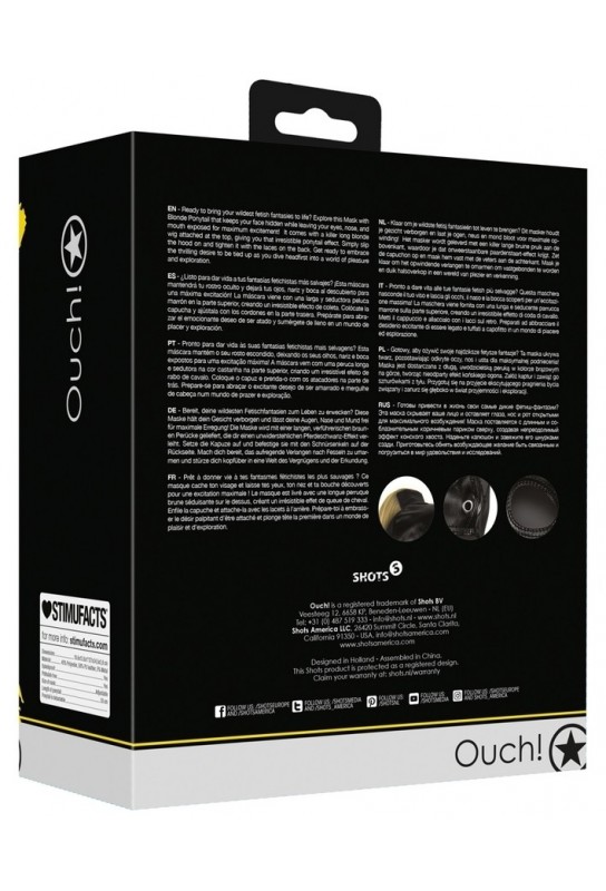 Découvrez un accessoire captivant qui saura éveiller vos désirs les plus profonds : la Cagoule avec Queue de Cheval Blonde HOOD TAIL de la marque Ouch! Xtreme. Conçue pour ceux qui souhaitent explorer le monde du BDSM avec sophistication et glamour, cette cagoule vous permettra de vous métamorphoser en un soumis docile, prêt à vivre des moments intenses.
