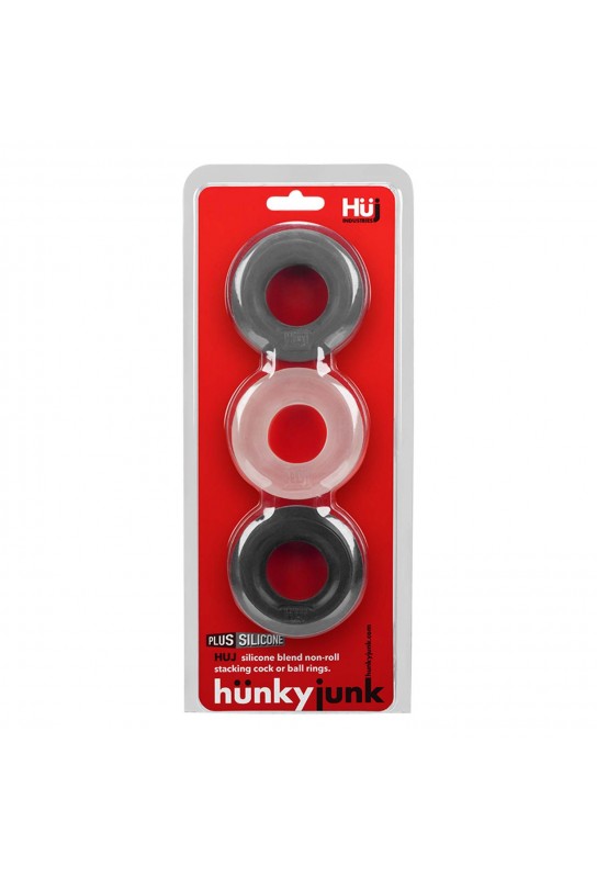 BDSM Pleasure est ravi de présenter le lot de 3 cockrings Huj Dark de la marque Hünkyjunk. Conçus pour offrir une expérience unique, ces anneaux péniens étirables sont parfaits pour intensifier le plaisir. Enserrant à la fois le sexe et les bourses, ils promettent une stimulation inégalée.