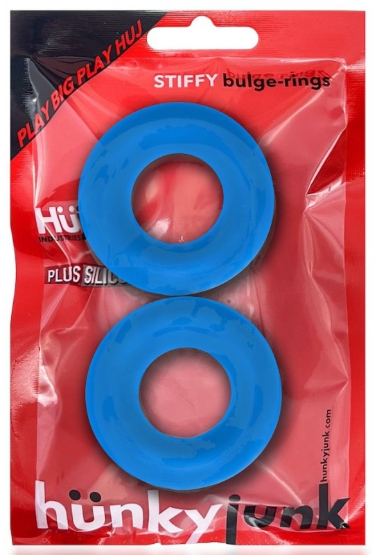 BDSM Pleasure est ravi de présenter le lot de 2 cockrings Stiffy Bulge Bleus de la marque Hunkyjunk. Ces anneaux souples sont conçus pour sublimer vos parties intimes, créant un effet Bulge irrésistible, parfait sous un sous-vêtement. Avec un diamètre intérieur de 20 mm et une épaisseur de 17 mm, ces cockrings offrent un ajustement confortable et extensible.