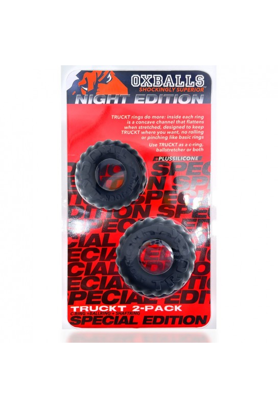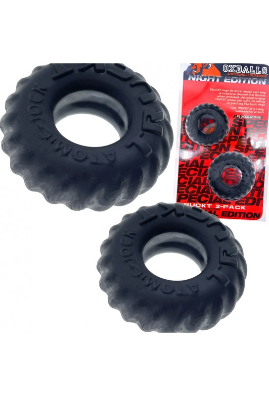 BDSM Pleasure est ravi de présenter le Lot de 2 Anneaux péniens Truckt Noirs, une invitation à explorer de nouvelles sensations. Conçus avec une élégante forme inspirée du pneu, ces anneaux sont non seulement esthétiques mais également fonctionnels, offrant un maintien optimal.