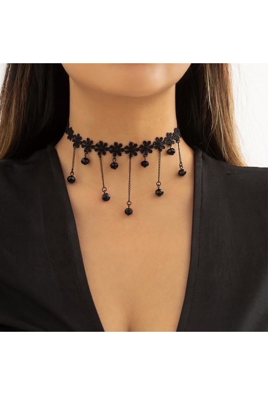 BDSM Pleasure est ravi de présenter le Tour de Cou Flowers Diamond, un accessoire élégant qui allie sophistication et sensualité. Ce tour de cou noir, délicatement orné de fleurs et de perles tombantes, est conçu pour sublimer votre look tout en ajoutant une touche de glamour à vos tenues.