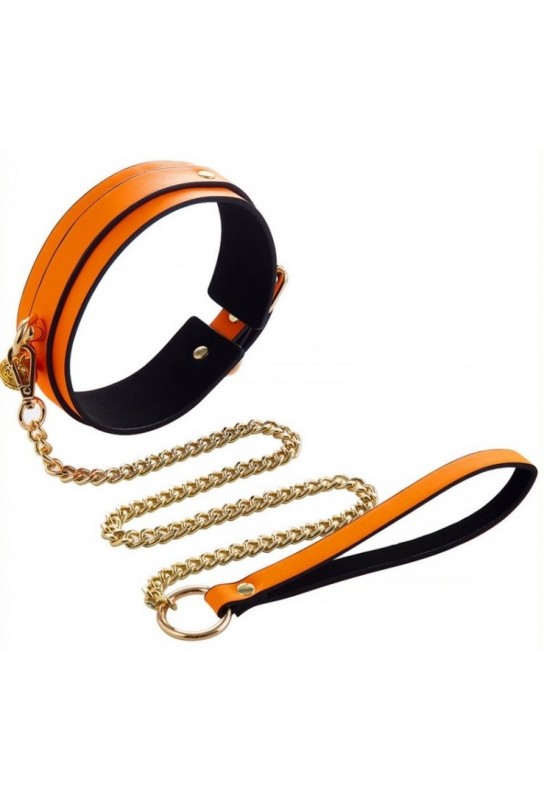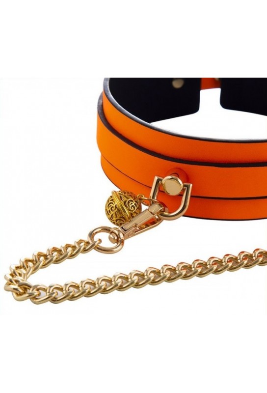 BDSM Pleasure est ravi de présenter ce collier-laisse phosphorescent au coloris orange, pensé pour attirer tous les regards… même lorsque la lumière s’éteint. Son effet brille dans le noir sublime vos jeux de rôle et met en scène une allure BDSM chic, à la fois audacieuse et glamour.