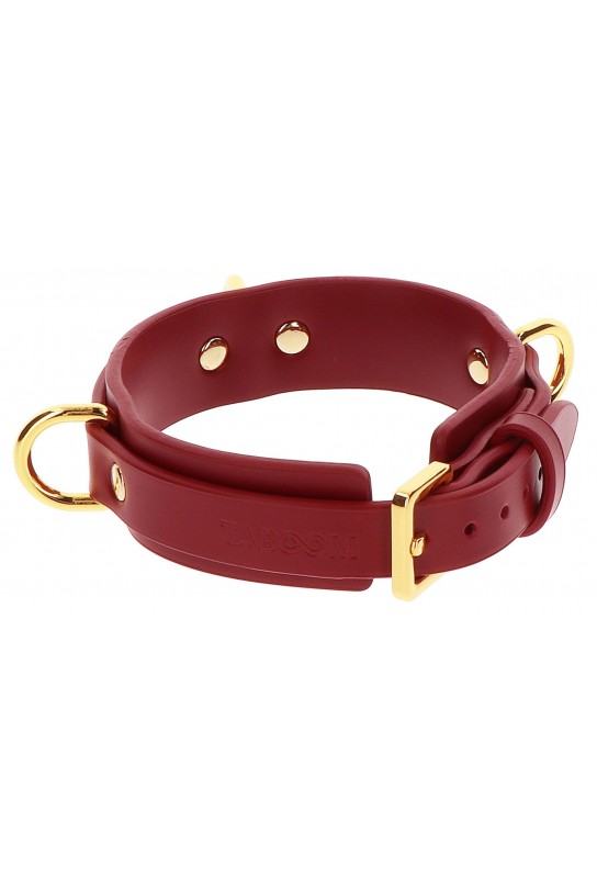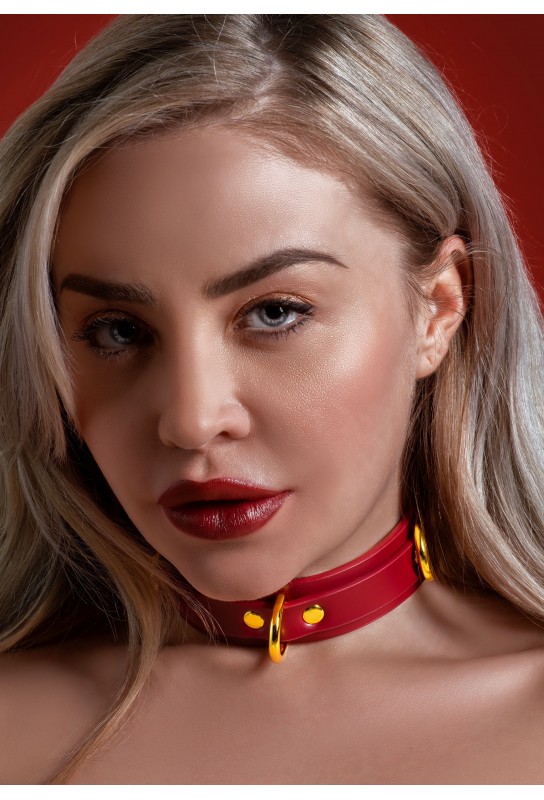 BDSM Pleasure est ravi de présenter ce collier D-Ring signé Taboom, un accessoire chic et glamour pensé pour sublimer vos jeux de rôle et votre univers BDSM. Sa sangle rouge en polyuréthane, d’une largeur de 3 cm, attire le regard avec élégance, tandis que ses attaches et anneaux en métal doré apportent une finition précieuse. Ajustable pour un tour de cou de 34 à 39 cm, il épouse la silhouette avec assurance et raffinement. Un détail de caractère, fait pour intensifier l’atmosphère et affirmer votre style.