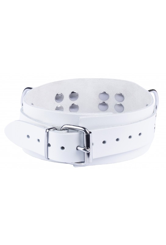 BDSM Pleasure est ravi de présenter le collier en cuir Ultra blanc, une pièce au style chic et résolument glamour, pensée pour sublimer chaque tenue et affirmer une présence. Sa large bande de 5,5 cm offre un maintien élégant, tandis que ses attaches, rivets et anneaux en métal apportent une finition raffinée. Réglable pour un tour de cou de 38 à 52 cm, il s’adapte avec aisance et accompagne vos envies avec précision. Confectionné en cuir véritable de vache et réalisé avec un tannage végétal, ce collier incarne la qualité et l’authenticité. Fabriqué en Europe, il s’impose comme un accessoire BDSM élégant, fait pour être porté, admiré… et désiré.