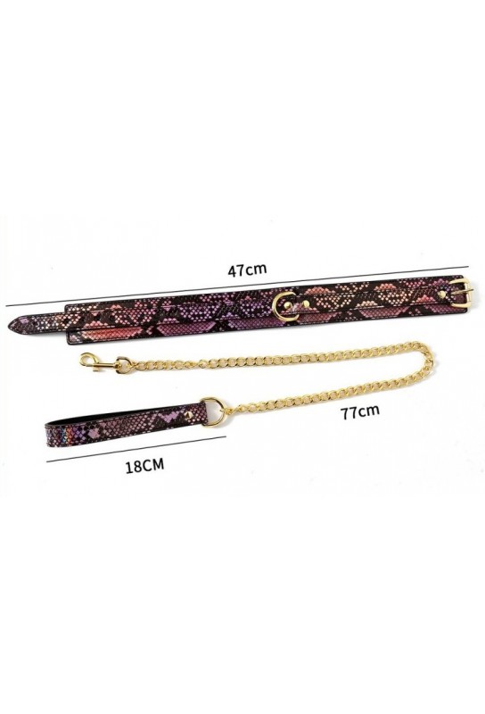 BDSM Pleasure est ravi de présenter le collier-laisse Snakine, un accessoire BDSM au look chic et affirmé. Sa finition noir-rose à l’effet peau de serpent attire immédiatement le regard, pour sublimer les jeux de rôle et renforcer la sensation de contrôle avec élégance.