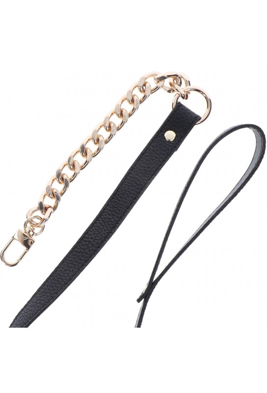 BDSM Pleasure est ravi de présenter la laisse de la gamme Dona, un accessoire BDSM pensé pour sublimer vos jeux de dominance avec une élégance chic et glamour. Sa lanière en simili noire offre une prise en main agréable et un look sobre, tandis que sa petite chaîne en métal doré ajoute une touche précieuse, idéale pour affirmer un style raffiné. Avec sa longueur de 80 cm, elle accompagne vos scénarios en apportant présence, contrôle et intensité, tout en restant délicate à l’œil. Un essentiel pour celles et ceux qui aiment marquer l’instant avec une sophistication assumée.