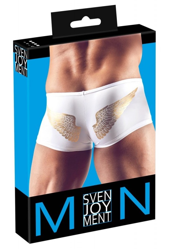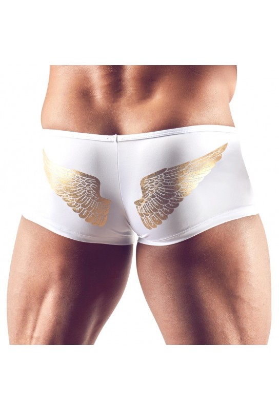 BDSM Pleasure est ravi de présenter le Boxer ALIAX Blanc, une pièce audacieuse qui marie élégance et sensualité. Confectionné dans un tissu fin de qualité, ce boxer se distingue par ses ailes dorées délicatement placées sur les fesses, ajoutant une touche de glamour à votre tenue.