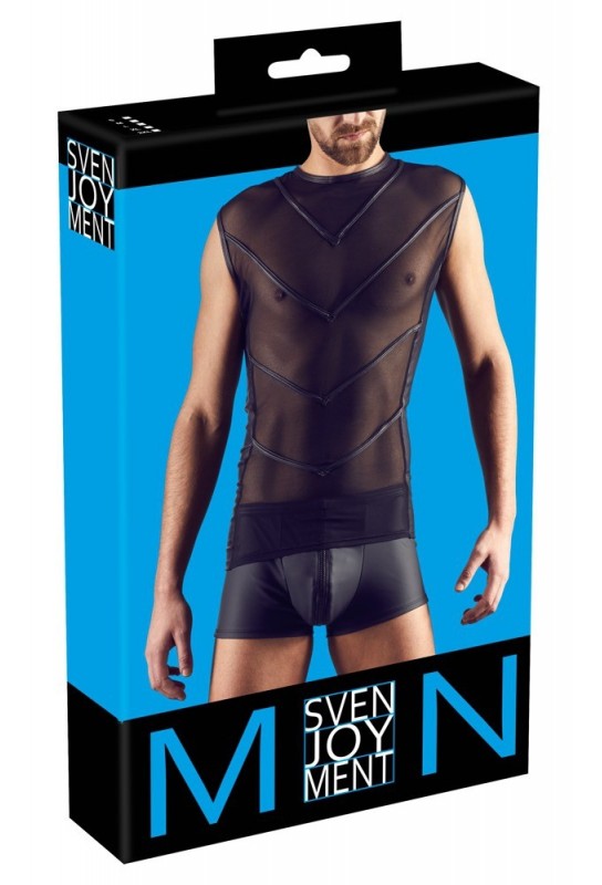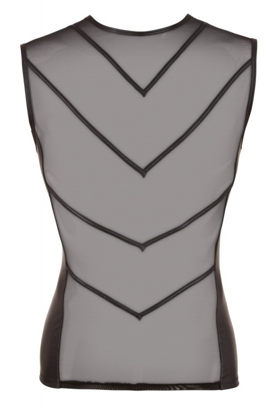 BDSM Pleasure est ravi de présenter le Débardeur RAFT Noir, une pièce audacieuse qui allie élégance et sensualité. Conçu avec un tissu en tulle transparent à l'avant, il dévoile subtilement la peau tout en offrant une allure chic et glamour. À l'arrière, le tissu opaque en simili mat assure un contraste captivant, mettant en valeur les courbes de votre silhouette.