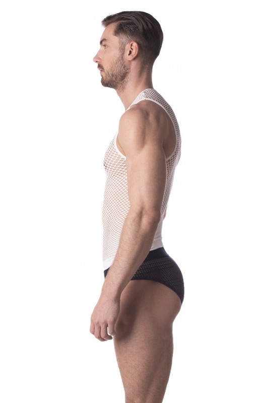 Ne manquez pas cette occasion de rehausser votre garde-robe avec une pièce qui combine style et provocations. Offrez-vous le Débardeur Filet Stefano Blanc et entrez dans un univers où chaque moment devient une aventure sensuelle.