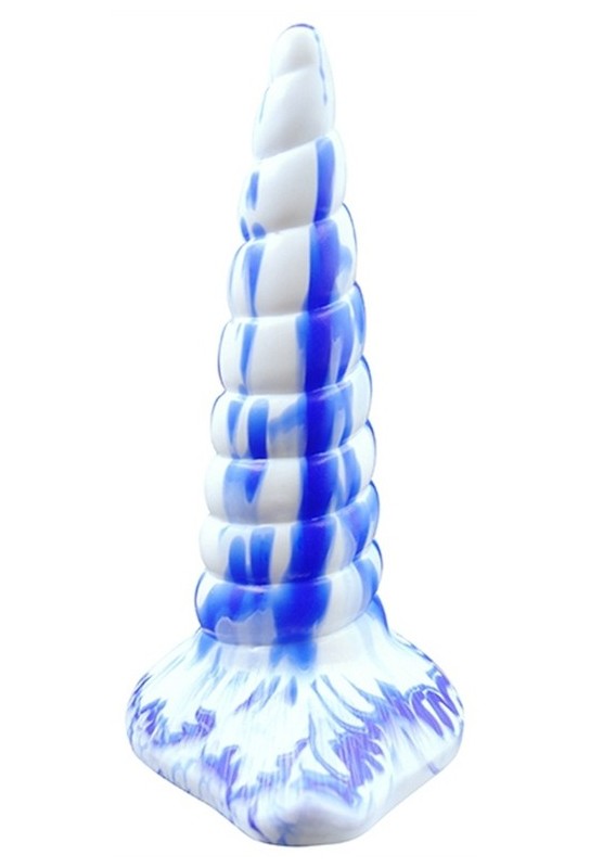 BDSM Pleasure est ravi de présenter un chef-d'œuvre de plaisir : ce plug aux teintes envoûtantes de bleu et blanc, inspiré par la magie des licornes. Sa forme unique et torsadée offre une expérience d'insertion délicieuse, alliant esthétique et fonctionnalité.