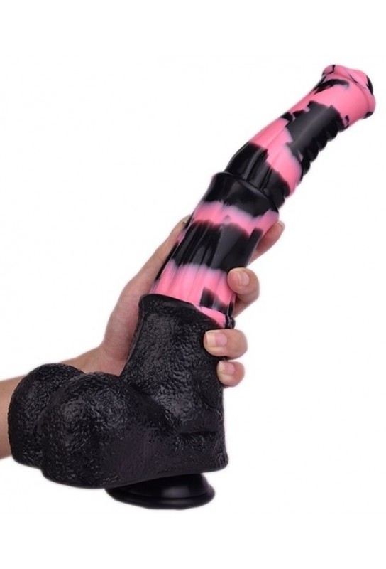 BDSM Pleasure est ravi de présenter un véritable chef-d'œuvre de la sensualité : un gode à la forme animale, conçu pour éveiller vos sens et explorer vos fantasmes les plus profonds. Avec sa texture raffinée et ses teintes envoûtantes de noir et rose, cet accessoire se distingue par ses dimensions parfaitement pensées : une longueur insérable de 19 cm et une largeur variant de 3,7 cm à 5 cm.