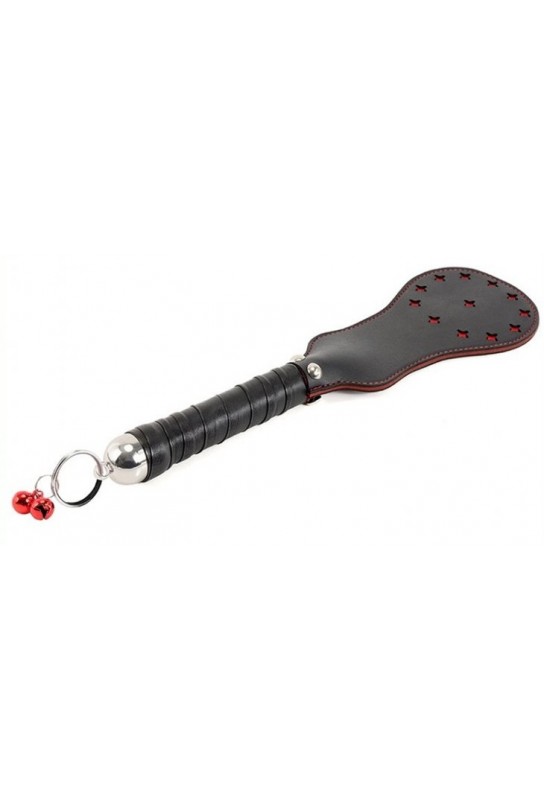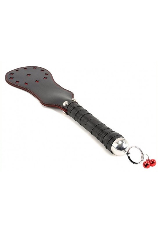 BDSM Pleasure est ravi de présenter ce paddle BDSM en simili cuir (polyuréthane), pensé pour sublimer vos jeux avec une touche chic et sensuelle. Sa partie haute de 17 x 10 cm, à la forme arrondie, est rehaussée d’étoiles rouges en surface pour un style audacieux et glamour. Le manche, habillé de grelots rouges, accompagne chaque mouvement d’une signature sonore envoûtante. Avec une longueur totale de 35 cm, il offre une prise en main confortable et un contrôle précis pour intensifier l’expérience, tout en élégance.