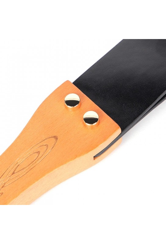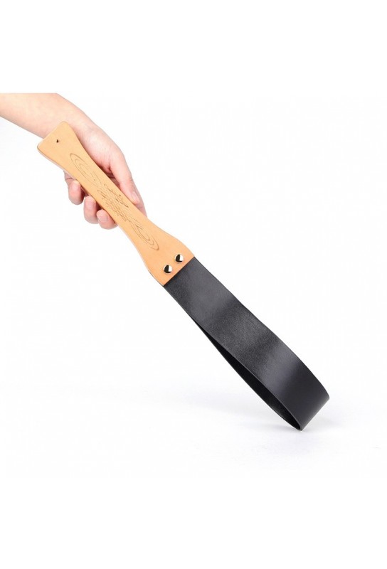 BDSM Pleasure est ravi de présenter ce paddle BDSM au design chic et glamour, pensé pour sublimer vos jeux de sensation avec élégance. Avec sa longueur totale de 48 cm, il offre une excellente prise en main et une belle amplitude de mouvement. Sa partie souple en simili cuir noir mesure 26 cm de long pour 4,5 cm de large, idéale pour varier l’intensité tout en gardant une touche raffinée. Le manche en bois de 21 cm et 2,5 cm d’épaisseur assure une tenue stable et confortable, pour un contrôle précis à chaque instant. Un accessoire incontournable pour enrichir vos scénarios dominant / soumis avec style.