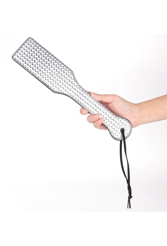 BDSM Pleasure est ravi de présenter ce paddle rigide au relief affirmé, pensé pour celles et ceux qui aiment les sensations nettes et le contrôle élégant. Avec une longueur totale de 31,5 cm, une zone de contact de 14 cm et une largeur de 7 cm, il offre une prise en main sûre et un impact bien réparti. Son simili à la finition argent apporte une touche chic et glamour à vos jeux BDSM, pour un rituel aussi esthétique qu’intense. Laissez le relief écrire le tempo, et transformez chaque geste en promesse.