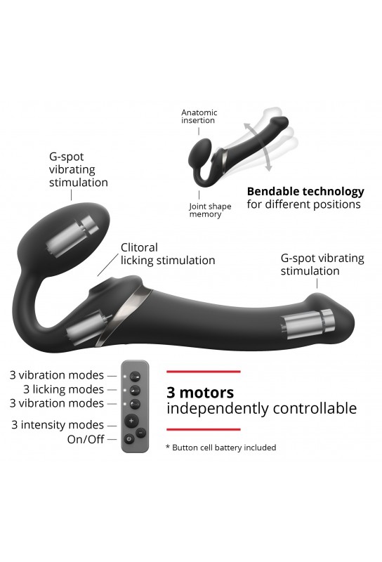 BDSM Pleasure est ravi de présenter le Dildo MULTI ORGASM de la marque Strap-On-Me, disponible dans sa version S et en élégante couleur noire. Ce sextoy innovant se distingue par sa capacité à être utilisé comme un gode-ceinture sans nécessiter de harnais, offrant une expérience unique et sans contrainte. Grâce à son plug de 4 cm de largeur, il se maintient parfaitement en place.