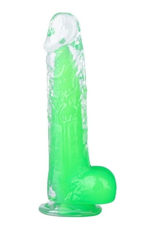BDSM Pleasure est ravi de présenter un **gode transparent** au design **réaliste**, parfait pour explorer de nouvelles sensations. Avec son intérieur en **vert fluo**, cet accessoire ne manquera pas d'attirer l'œil tout en offrant une expérience inoubliable.