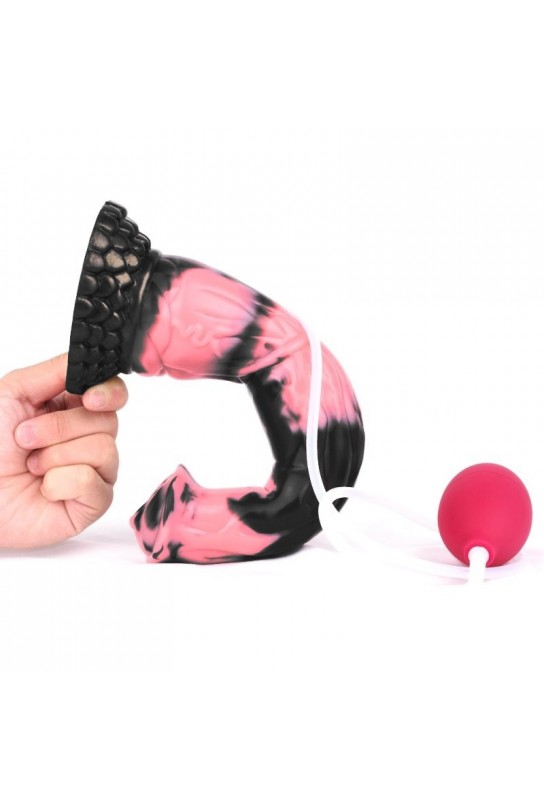 Chez BDSM Pleasure, nous sommes fiers de vous présenter un **gode éjaculateur** exceptionnel, inspiré par la silhouette d'un **sexe de cheval**. Ce modèle audacieux, avec son élégant mélange de **couleurs rose et noir**, est idéal pour ceux et celles qui souhaitent allier **esthétisme** et **plaisir** dans leurs moments intimes.
