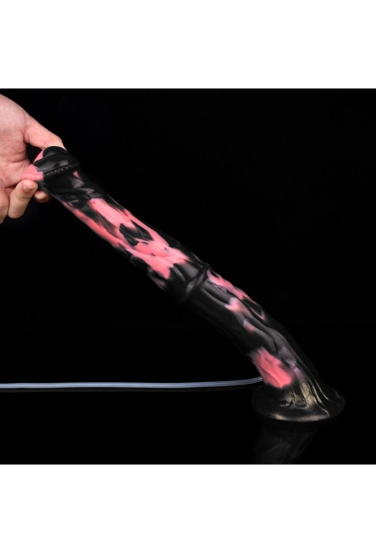 BDSM Pleasure vous invite à explorer de nouvelles dimensions du plaisir avec notre gode éjaculateur, inspiré par la forme unique d'un sexe de cheval. Avec ses teintes rose et noire, cet accessoire allie sophistication et originalité, parfait pour ceux qui recherchent une expérience intime inédite.