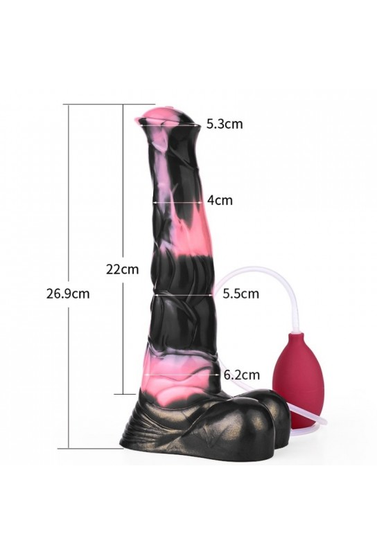 BDSM Pleasure est ravi de présenter notre gode éjaculateur envoûtant, alliant élégance et audace avec son design en rose et noir. Inspiré par la forme d'un sexe de cheval, cet accessoire unique saura éveiller vos sens et enrichir vos moments de plaisir.