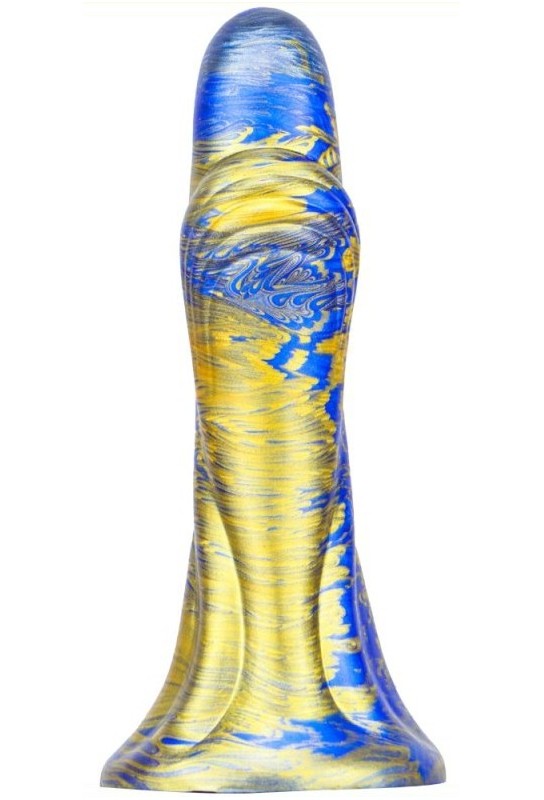 Sa surface marbrée, mêlant des teintes bleues et d'or, apporte une touche de glamour à vos moments intimes. La largeur, variant de 2.5 à 3.5 cm, garantit une stimulation parfaite, tandis que sa base ventouse assure une adhérence optimale pour des jeux audacieux et sans limites.