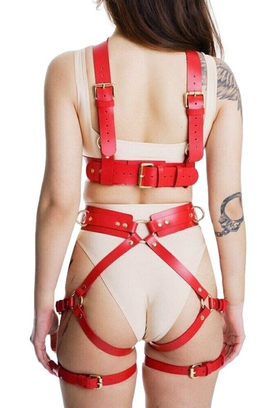 Les menottes, ajustables de 18 à 28 cm, ajoutent une touche de sophistication à vos jeux, tout en garantissant une sécurité maximale. Fabriqué en simili cuir rouge, ce harnais allie style et sensualité, vous invitant à plonger dans un univers de plaisir raffiné.