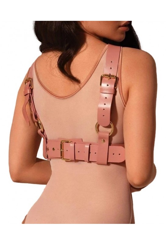 BDSM Pleasure est ravi de présenter notre élégant harnais de buste, conçu pour sublimer chaque silhouette. Avec une longueur maximale de 95 cm sous la poitrine et une largeur de 4.7 cm, ce harnais allie confort et style. Sa teinte rose en simili cuir, agrémentée d'attaches métalliques argentées, apporte une touche de glamour à vos jeux de rôle.