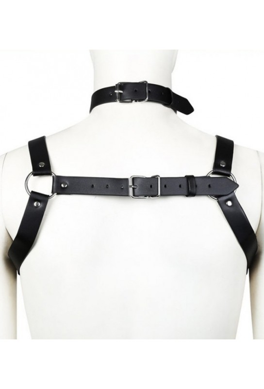 La partie qui passe autour du cou ajoute une touche supplémentaire de distinction et de charme, parfait pour celles et ceux qui souhaitent exprimer leur personnalité à travers leur tenue. Fabriqué en simili cuir (polyuréthane) de qualité, ce harnais allie confort et esthétique, tandis que les anneaux en métal apportent une note de robustesse et d'élégance.