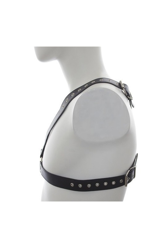 BDSM Pleasure est ravi de présenter ce harnais pour homme, l'accessoire incontournable pour ceux qui souhaitent explorer l'univers du BDSM avec élégance. Conçu en faux cuir de polyuréthane, il offre une résistance optimale tout en étant agréable à porter. Sa coupe en croix sur le torse met en valeur la silhouette masculine, accentuant ainsi le rôle de dominateur avec sophistication.