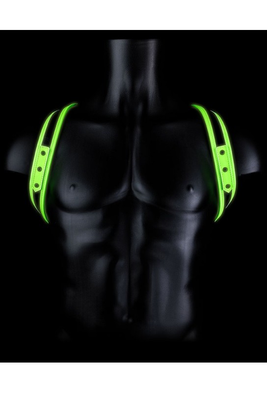 BDSM Pleasure est ravi de présenter le harnais phosphorescent Sling Glow, une pièce unique qui illumine vos soirées les plus audacieuses. Conçu avec des contours qui brillent dans l'obscurité, ce harnais attire tous les regards et ajoute une touche de mystère à votre allure.
