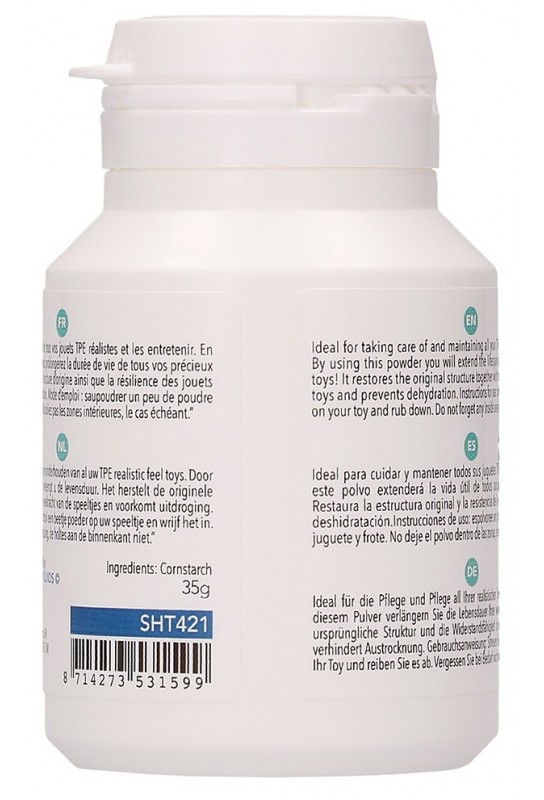 Découvrez notre Poudre d'entretien pour Sextoys TPE, un essentiel pour maintenir vos accessoires fétichistes dans un état impeccable. Conçue spécifiquement pour les sextoys en TPE, cette poudre de fécule de maïs assure une protection et une durabilité accrues de vos précieux jouets.
