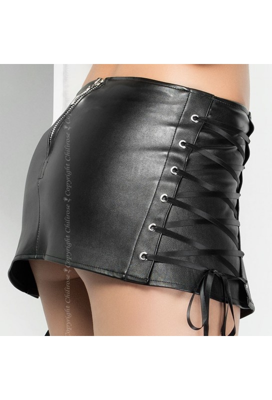 BDSM Pleasure est ravi de présenter la Jupe Rania Noire, une pièce audacieuse qui allie élégance et sensualité. Conçue en tissu imitant le cuir, cette jupe se distingue par ses lacets raffinés sur les côtés, ajoutant une touche de mystère à votre tenue.