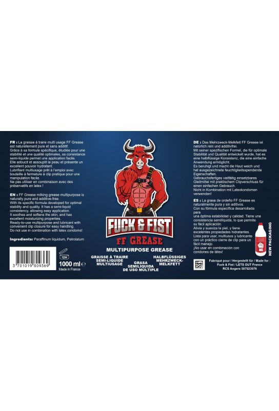 Découvrez la Graisse à Traire FF Grease, un produit incontournable pour tous les passionnés de pratiques BDSM. Conçue pour offrir une glisse optimale, cette graisse à base de paraffinum liquidum et petrolatum est l’alliée parfaite pour vos moments de plaisir. Son volume généreux de 1 litre garantit que vous en aurez toujours à disposition, rendant chaque expérience unique et inoubliable.