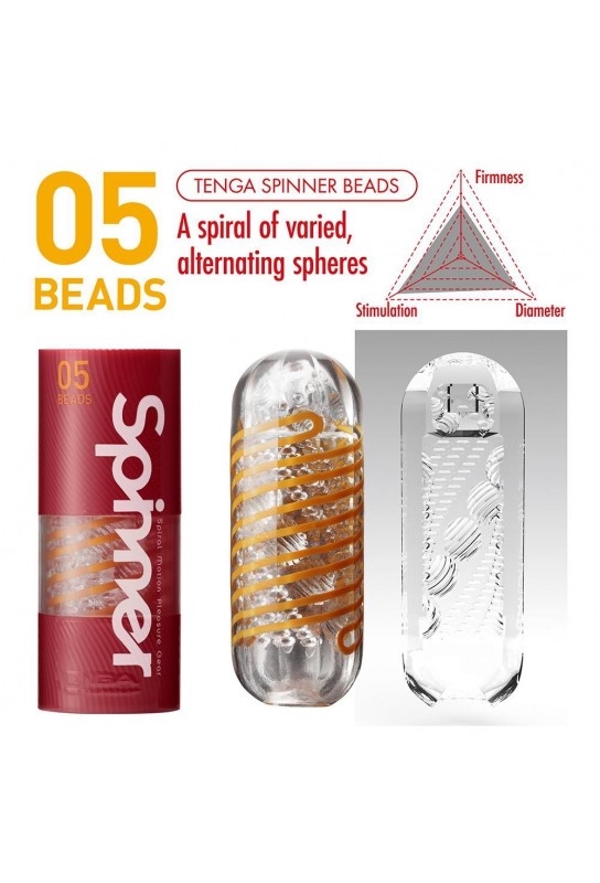 BDSM Pleasure est ravi de présenter le Masturbateur Spinner 05 Beads de la renommée marque Tenga, un véritable chef-d'œuvre conçu pour éveiller vos sens. Avec sa gaine en élastomère ultra-souple, ce sextoy vous invite à plonger dans un univers de sensations inoubliables. Grâce à son intérieur texturé, chaque mouvement devient un moment d'extase, tandis que les spirales intégrées apportent une fermeté qui intensifie le plaisir.