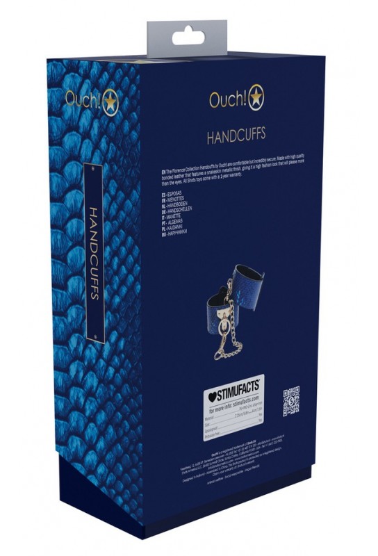 BDSM Pleasure est ravi de présenter ces menottes de poignets bleu profond, pensées pour sublimer vos jeux de bondage avec une touche chic et glamour. Leur tour de poignet est ajustable de 17 à 23 cm pour un maintien adapté, tandis que leur largeur de 4 cm apporte une présence élégante au poignet. Reliées par une chaîne dorée de 20 cm, elles signent un look raffiné et assumé. Confectionnées en simili, elles invitent à explorer le contrôle et l’abandon avec style, pour des instants intenses où chaque détail compte.