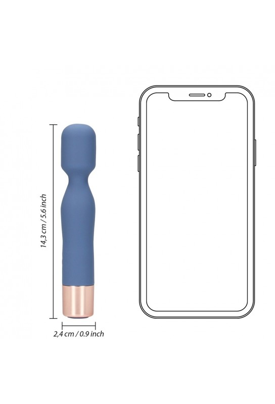 Ce mini wand mesure 14 cm de longueur totale, avec une longueur insérable de 11,5 cm. Son diamètre maximal de 2,5 cm assure une stimulation optimale et un réel confort lors de vos moments d'intimité. Revêtu d'un silicone doux et soyeux, il promet une expérience agréable, à la fois délicate et excitante.