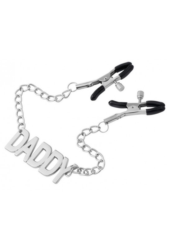 BDSM Pleasure est ravi de présenter ces pince-tétons en métal au style affirmé, sublimés par une plaque avec le mot DADDY (7 x 2,5 cm). Pensées pour éveiller les sensations avec élégance, elles s’ajustent facilement afin de moduler la pression selon les envies. Leurs extrémités protégées apportent un meilleur confort tout en conservant ce frisson si recherché. Avec une longueur totale de 40 cm, cet accessoire BDSM s’impose comme un détail aussi esthétique que puissant, parfait pour intensifier les jeux et affirmer une dynamique assumée.