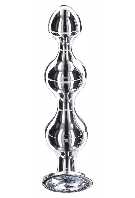 BDSM Pleasure est ravi de présenter le plug anal Diamond Star Beads M, une pièce d'exception qui saura éveiller vos sens. Conçu avec trois boules successives, ce bijou raffiné offre une largeur progressive de 1.9 à 2.5 cm, permettant une expérience de plaisir sur mesure. Avec une longueur insérable de 10.5 cm, il est parfait pour les novices comme pour les plus expérimentés.