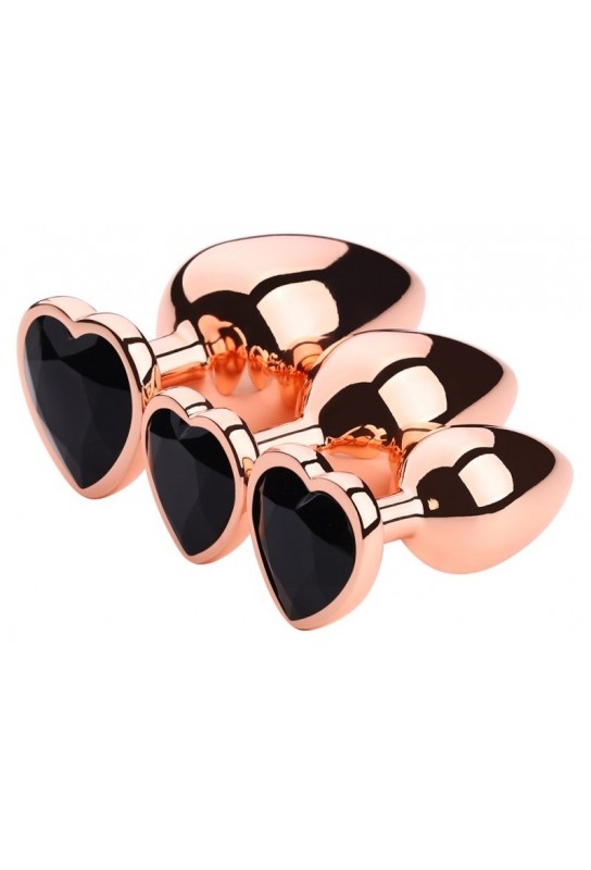 BDSM Pleasure est enchanté de vous présenter le plug bijou Gold Heart S, une pièce raffinée qui fusionne sensualité et chic. Sa teinte rose doré et son bijou en forme de cœur noir apportent une note de glamour à chaque moment d'intimité.