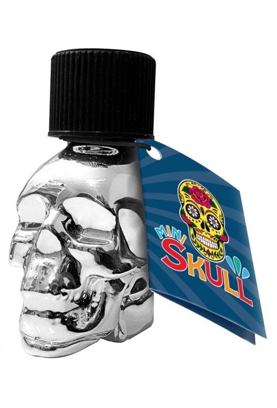Poppers MINI SKULL Quick Silver 15 ml à base de nitrite de propyle, dans un flacon en forme de crâne. Formule puissante pour des sensations fortes et un design unique.