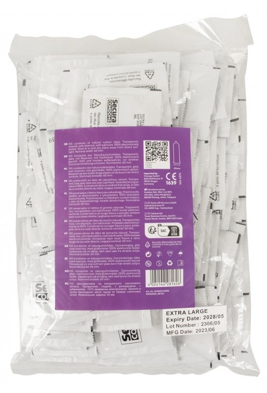 BDSM Pleasure est ravi de présenter les Préservatifs XXL en latex Extra Large 60mm x100 de la marque Secura Condoms. Conçus pour offrir un confort optimal lors de vos moments intimes, ces préservatifs sont parfaits pour ceux qui recherchent une expérience sans compromis.